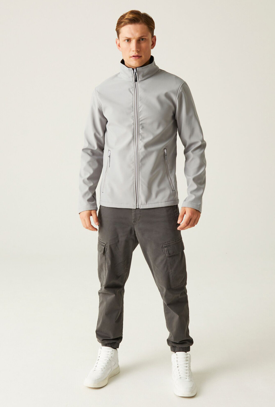 Mechanisch dehnbares Softshellgewebe aus Polyester | Bedruckbares wind- und wasserabweisendes Softshell-Außenmaterial mit warmem Fleecefutter | Zwei tief sitzende Reißverschlusstaschen und Reißverschluss-Abdeckung innen | Aus recycelten Materialien