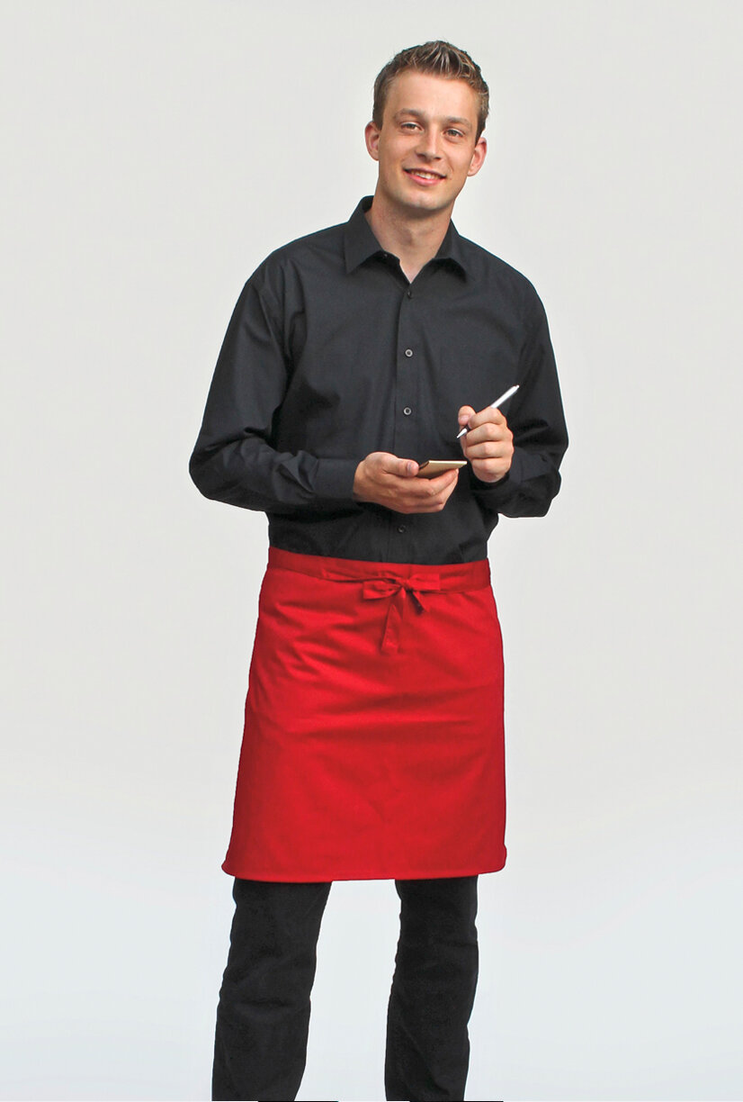 Köperbindung | Vorgeschrumpft | Reaktiv gefärbt | Verstärkt an Belastungspunkten | Pflegeleicht | Durchgehender Gürtel aus Schürzenstoff | Unbedruckt, waschbar bis 60° C | EU Produktion