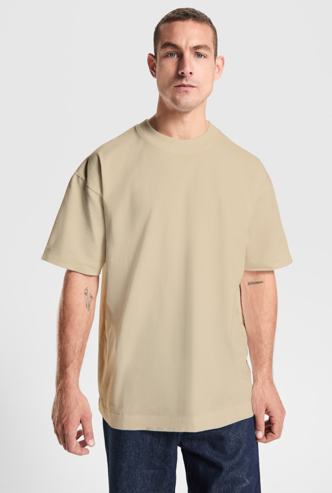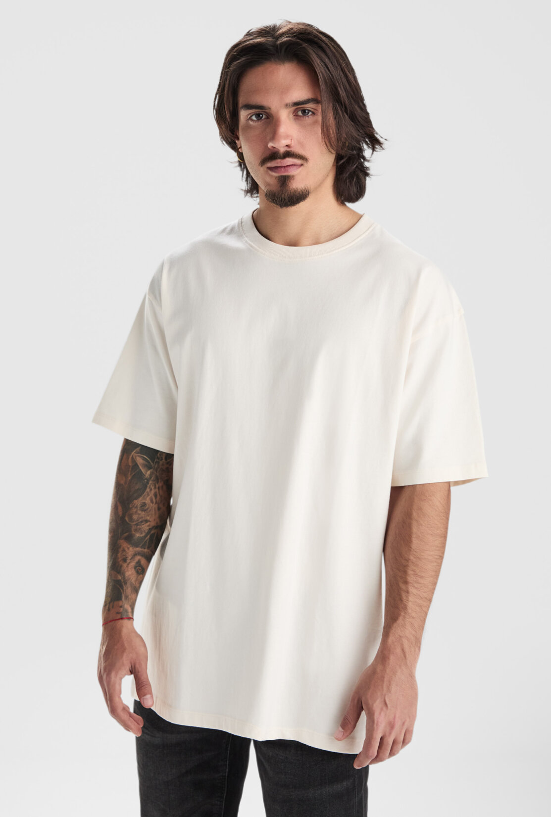 Oversize-T-Shirt mit kurzen Ärmeln und hoher Grammatur | Rundhalsausschnitt mit breiter 2x1-Rippe | Nähten am Hals Ton-in-Ton | Breite Doppelnaht an Saum und Ärmeln