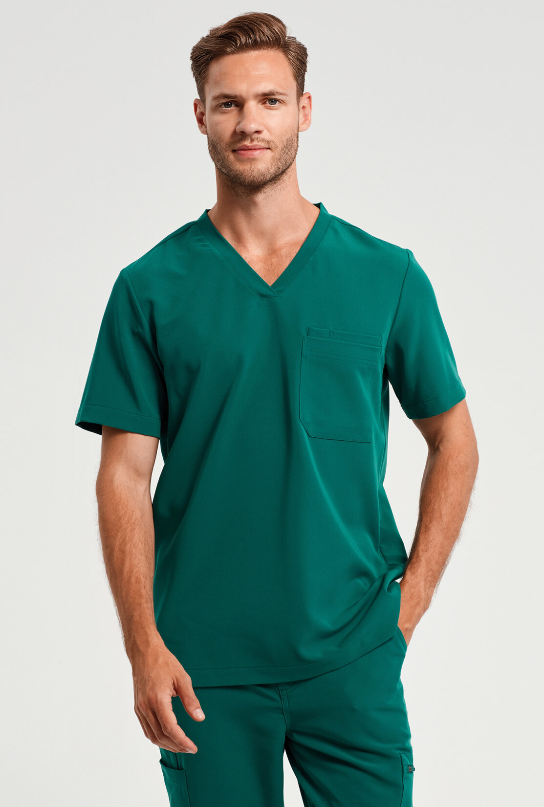 Enthält zertifiziertes recyceltes Polyester | Entwickelt für die industrielle Wäsche | Drei aufgesetzte Taschen | Fünf verdeckte Druckknopfverschlüsse | Schicker Reverskragen