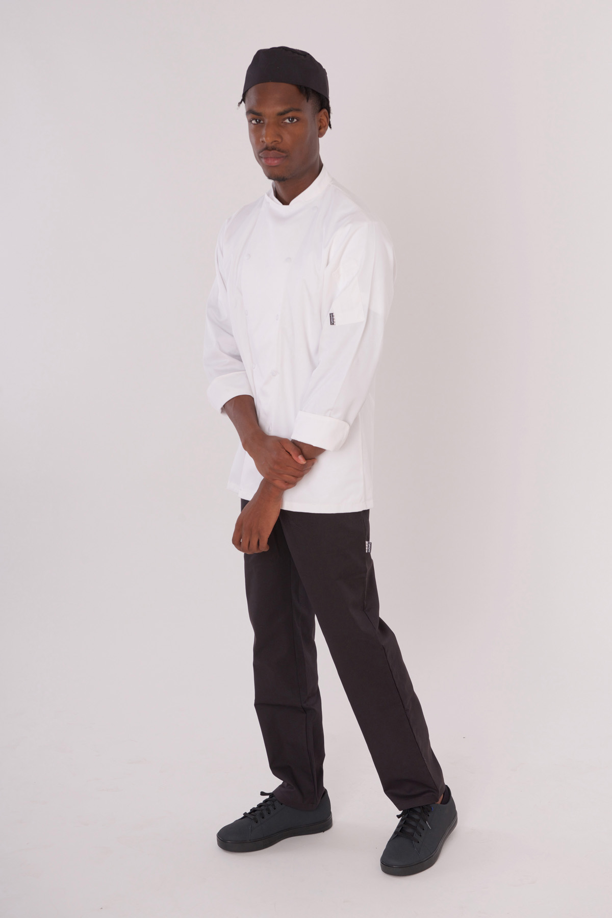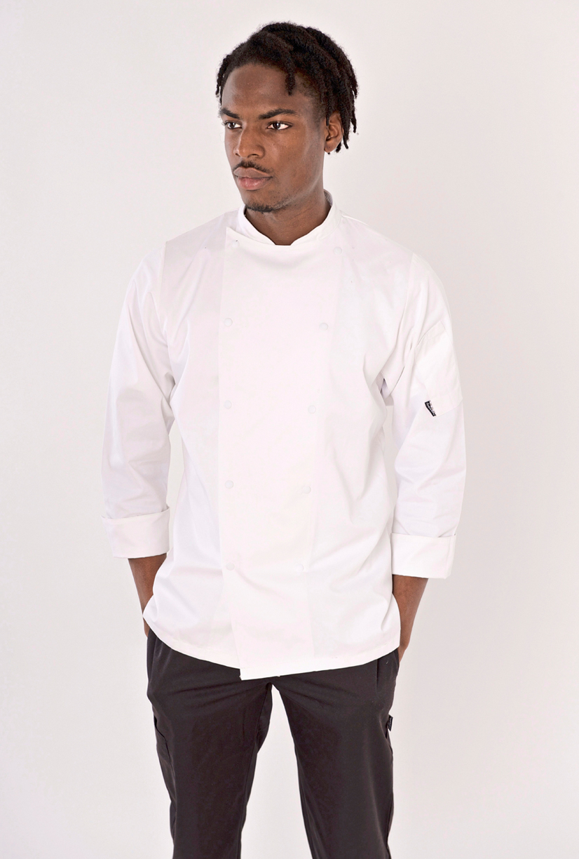 Unisex-Kochhemd mit Staycool-System, Belüftungseinsätze am Kragen und unter den Armen | Design mit abfallenden Schultern | Doppelte Stifttasche am linken Ärmel und Druckknöpfe | Umschlagmanschetten