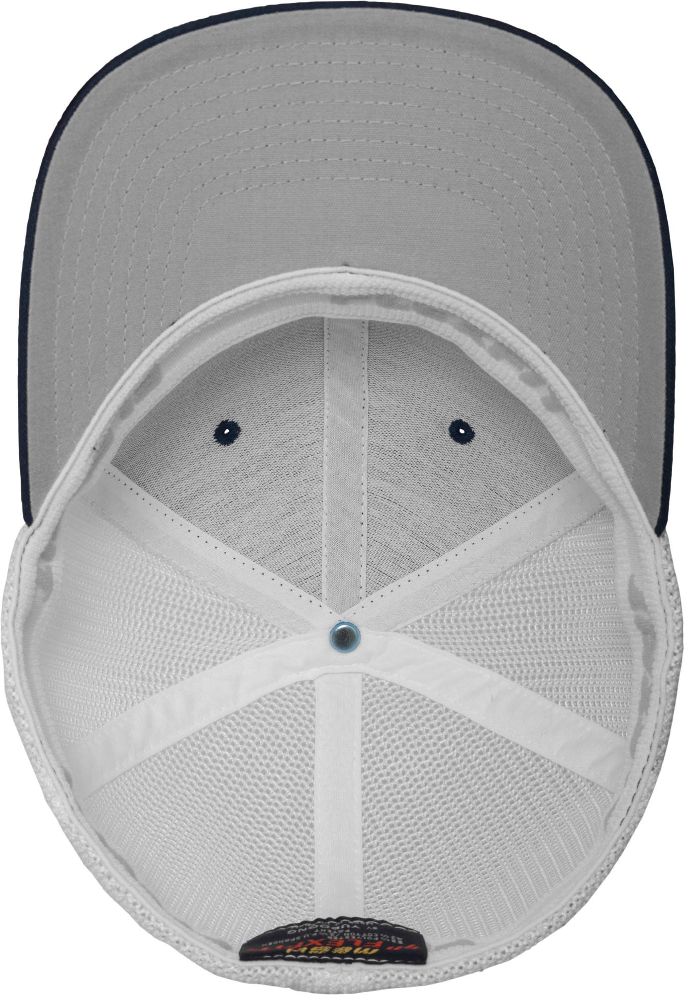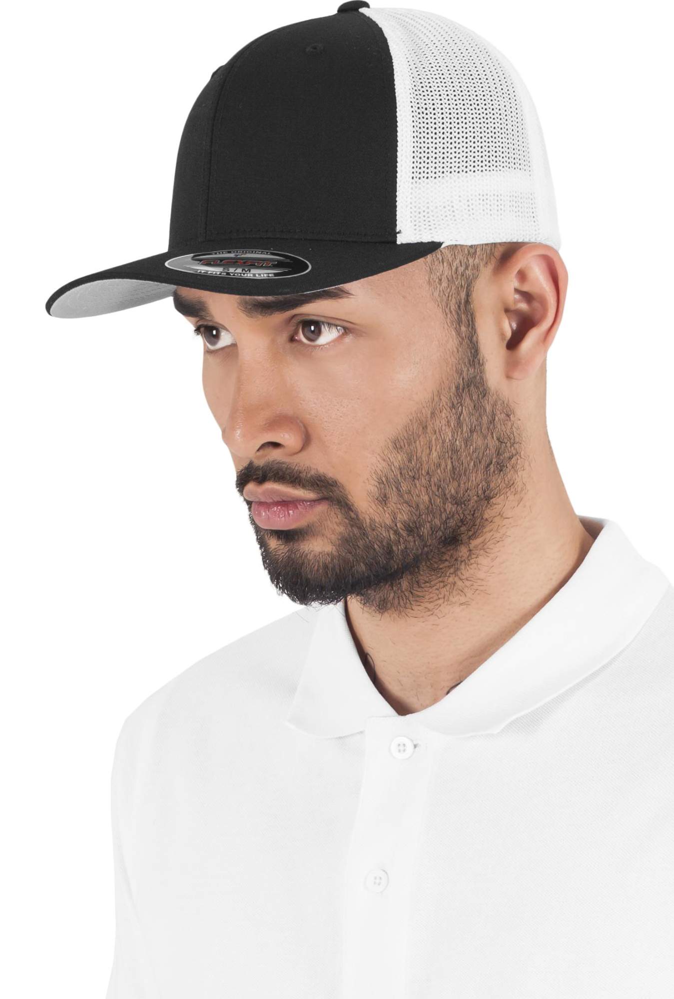 Cap FX6511 in 2-farbig | Patentiertes Flexfit Trucker Mesh | Hartschalenetui | Silberne Schirmunterseite | Acht Stickreihen auf dem Schirm