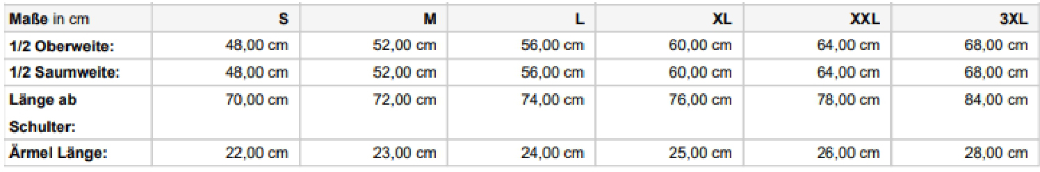 Größe | A (Breite) | B (Länge) | C (Ärmel) |
