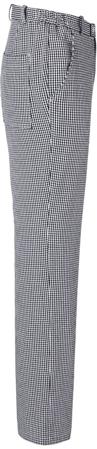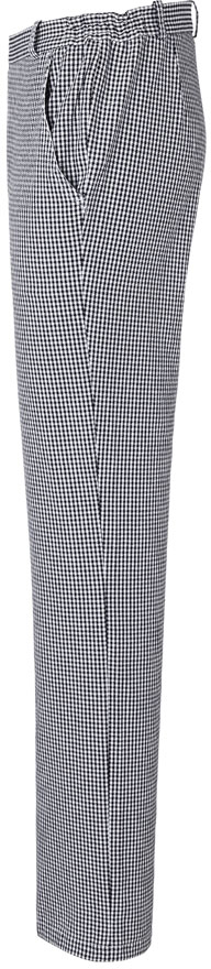 Köperstoff, 245 g/m², Pepitadesign | Kochhose für Herren mit seitlichen Gummizug am Bund | Gürtelschlaufen | 2 Seitentaschen | 1 aufgesetzte Gesäßtasche rechts | Waschbar bis 60 °C
