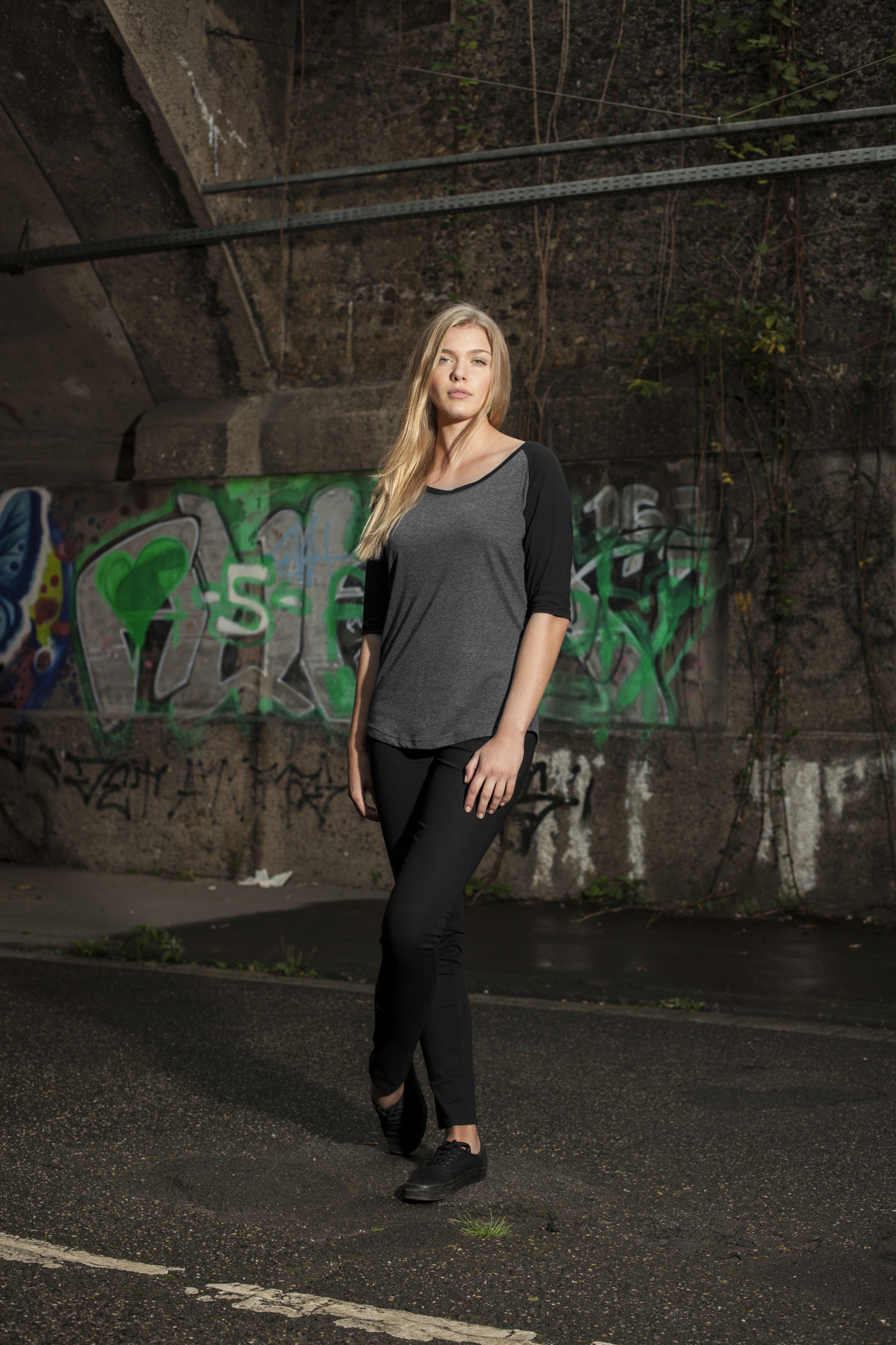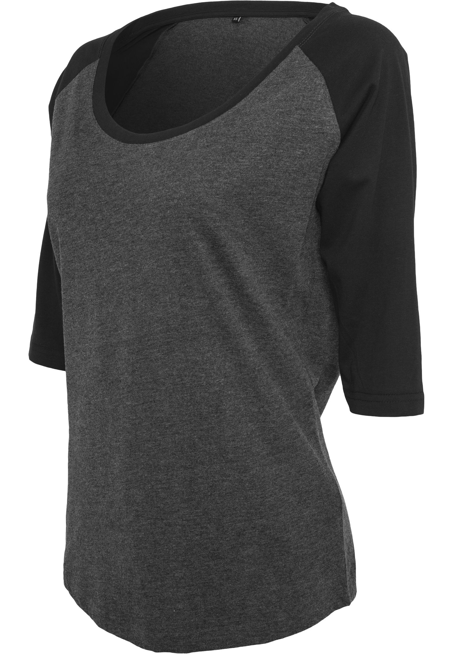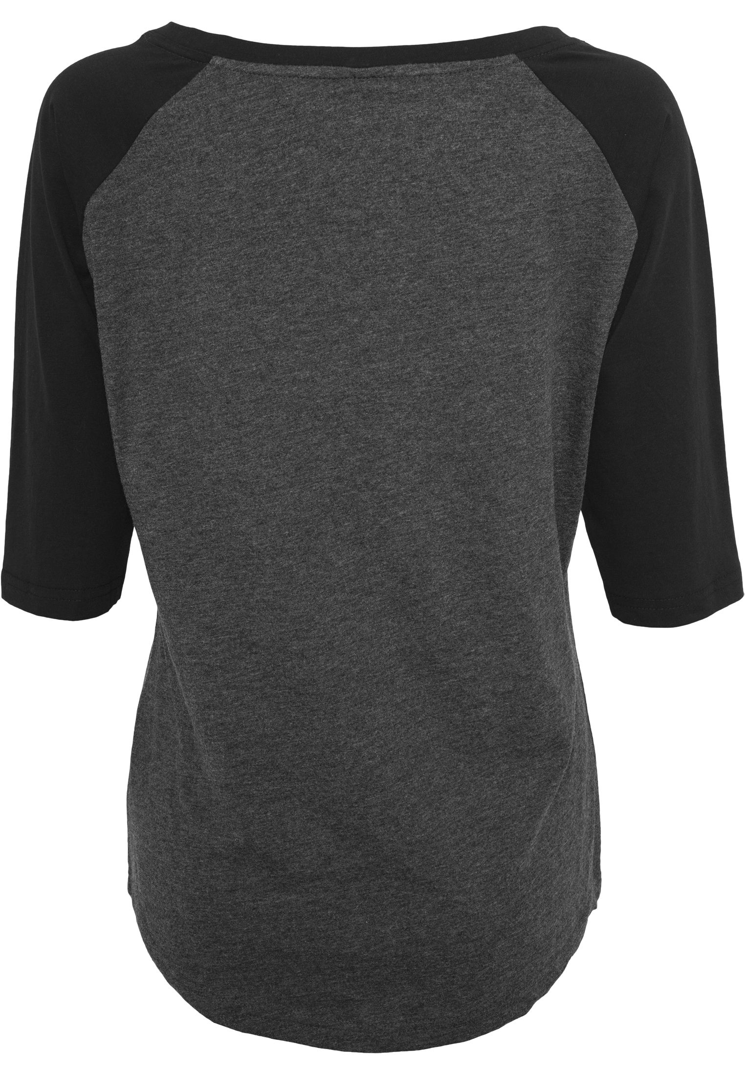 Leichter Single-Jersey | Neutrales Größenlabel ohne Branding, für Nackendruck geeignet | Lang geschnitten | 3/4 Raglan-Ärmel | Doppelnähte am Saum | Nackenband | Ripp-Bündchen am Halsausschnitt | Abgerundeter Saum