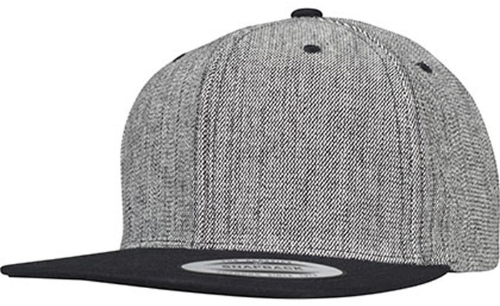 Typische Snapback Shape | Hartschalenetui | 2-farbiger Look | Visor schwarz | Melange-Material | Snapback-Verschluss
