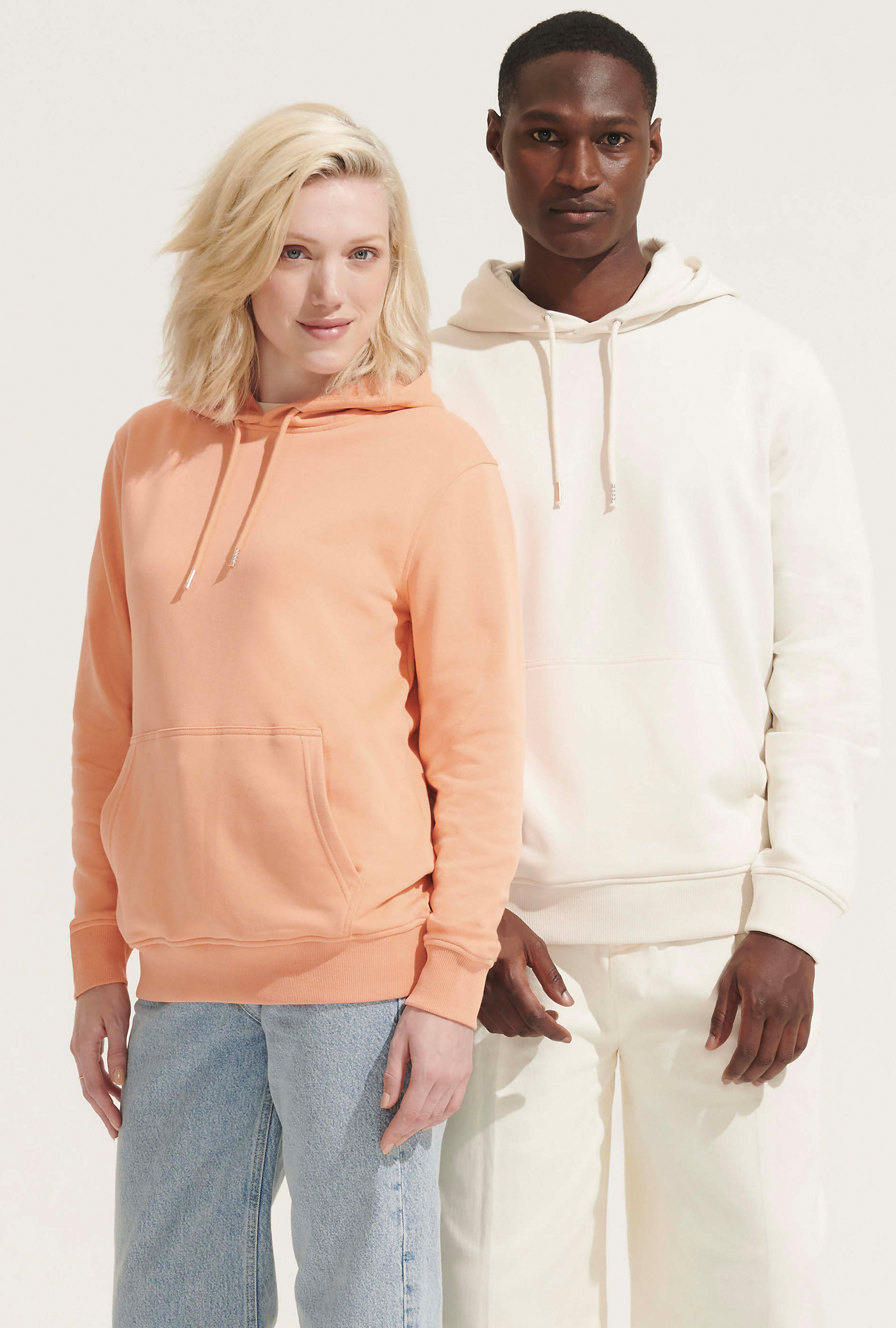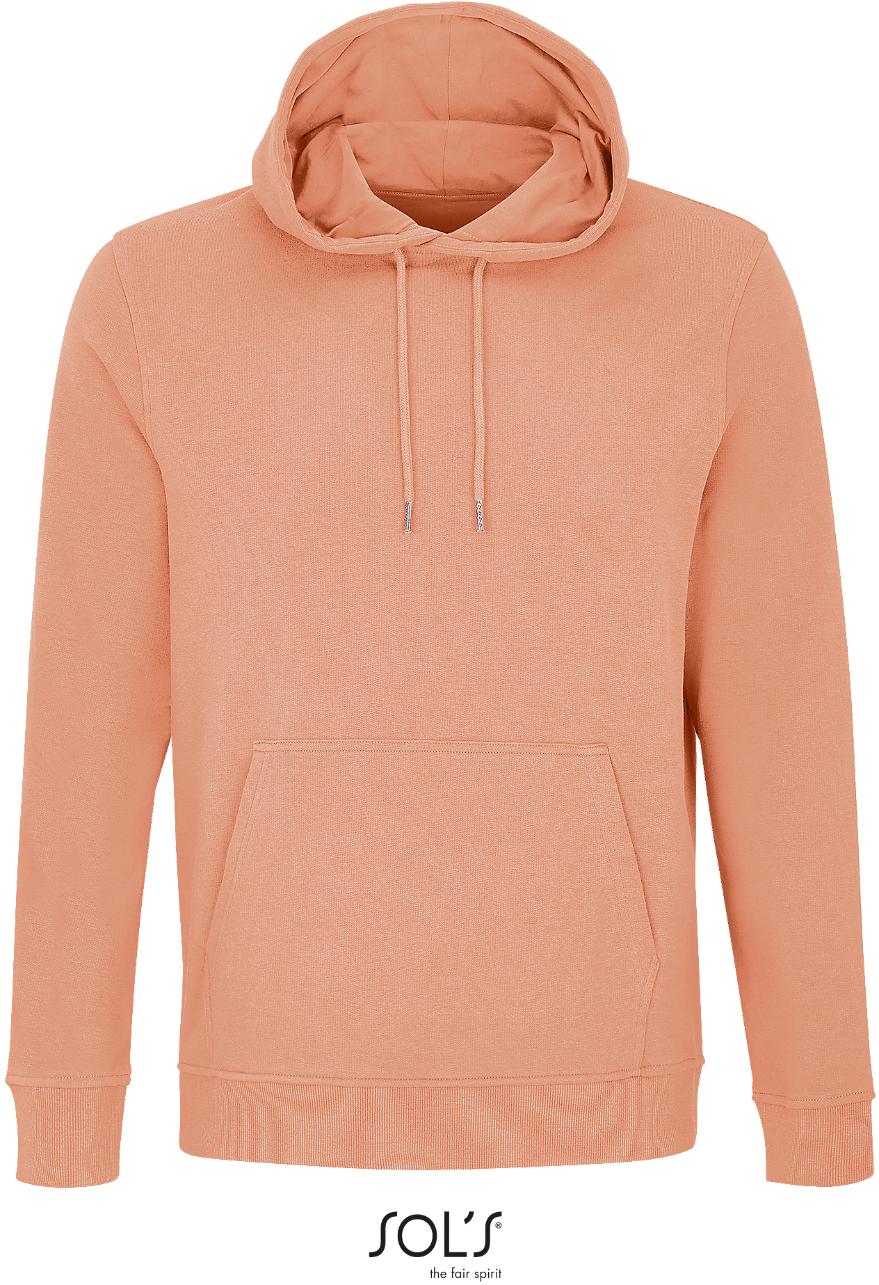 Außenmaterial: gekämmte Bio-Baumwolle in Umstellung | Recycelter Polyester | Geschnitten und genäht | Eingesetzte Ärmel | 2x2-Ripp an Bündchen und Saum | Kängurutasche | Jersey-Halbmond und Nackenband im Kragen | Kapuze mit Jersey-Futter | Kordelzug mit Metallösen und Stoppern | Ungebürstete Innenseite