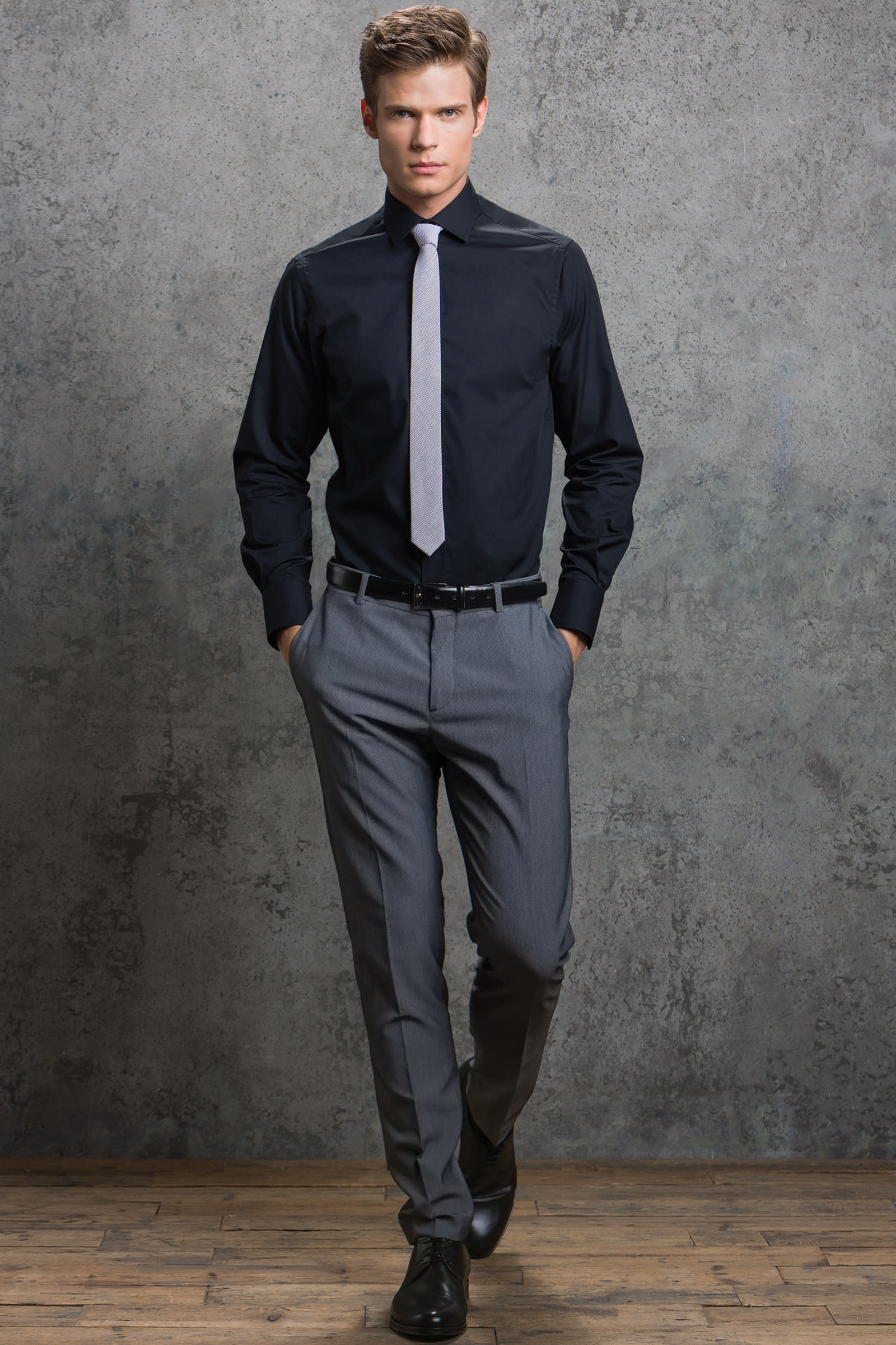 Leicht zu bügeln | Verstärkter, halb ausgeschnittener Stehkragen | Abnehmbare Kragenknochen | Zwei-Knopf-Manschetten mit spitzer Manschettenleiste | Ersatzknopf am Pflegeetikett | Gewebtes Etikett im Nacken