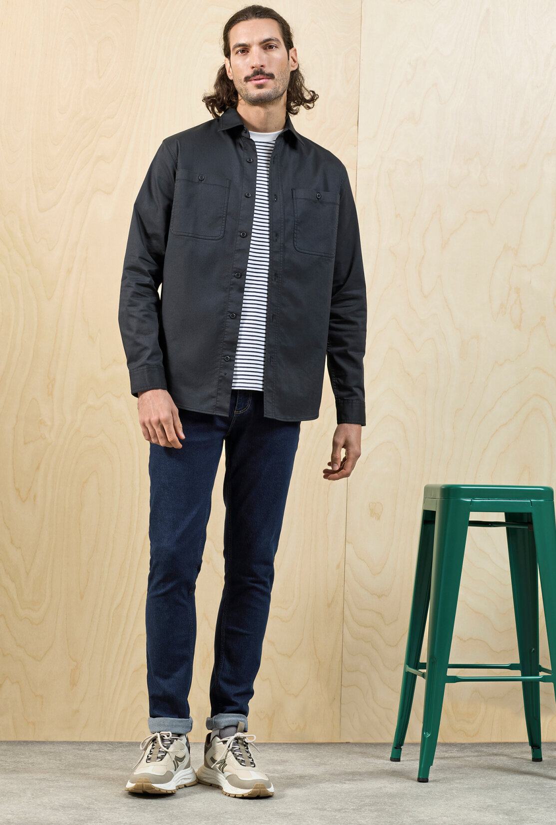 Überhemd mit Öffnung durch Ton-in-Ton-Druckknöpfe | Bequeme Passform | 2 aufgesetzte Brusttaschen | Manschetten mit Schlitz und Druckknopf | Kein Etikett