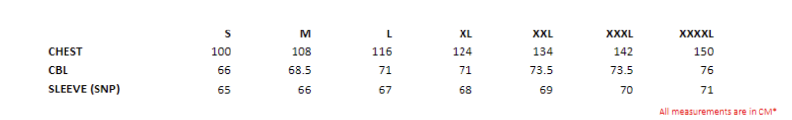 | 4XL | 75 | 76 | 71 |