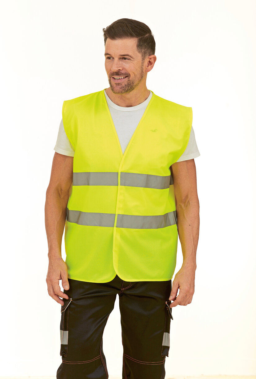 Außenmaterial: 100% Polyester, Taft; Polsterung: 100% Polyester; Fluorgewebe: 100% Single-Jersey-Polyester, 450 g/m² | Warnwendeweste mit mehreren Taschen und hohem Kragen | Frontreißverschluss mit zweiseitigem Puller | Rechte Außentasche für das Handy | Zwei plissierte Fronttaschen mit Seitenschlitzen | Zwei Stifttaschen | Reißverschlusstasche | Windstopper in den Bündchen | Mit verlängertem Rückenteil | Elastische Weitenregulierung | Zwei horizontale Warnstreifen | EU-zertifiziert nach EN ISO 13688:2013 und EN ISO 20471:2013/A1:2016 Klasse I | Dies ist ein Artikel zur Persönlichen Schutzausrüstung (PSA). Gemäß EU-Verordnung 2016/425 über persönliche Schutzausrüstung ist eine EU-Konformitätserklärung seitens des Herstellers Pflicht. Diese stellen wir Ihnen auf Anfrage gerne zur Verfügung.