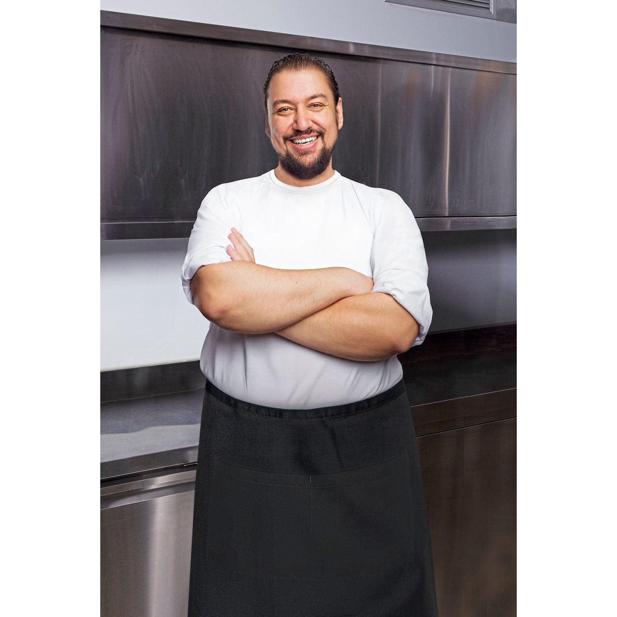 Köpergewebe | Extragroße Bistroschürze mit Bändern aus Schürzenstoff | Zusätzliche Strapazierfähigkeit durch Nahtsicherung an den Schürzenbändern | Aufgesetzte Tasche mit 2 Fächern (44 x 20 cm)